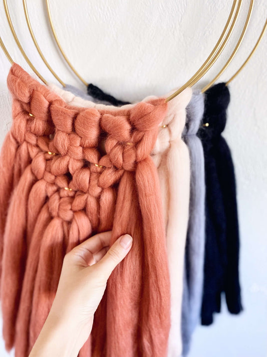 Merino and Macrame Wall Hanging in Terracotta