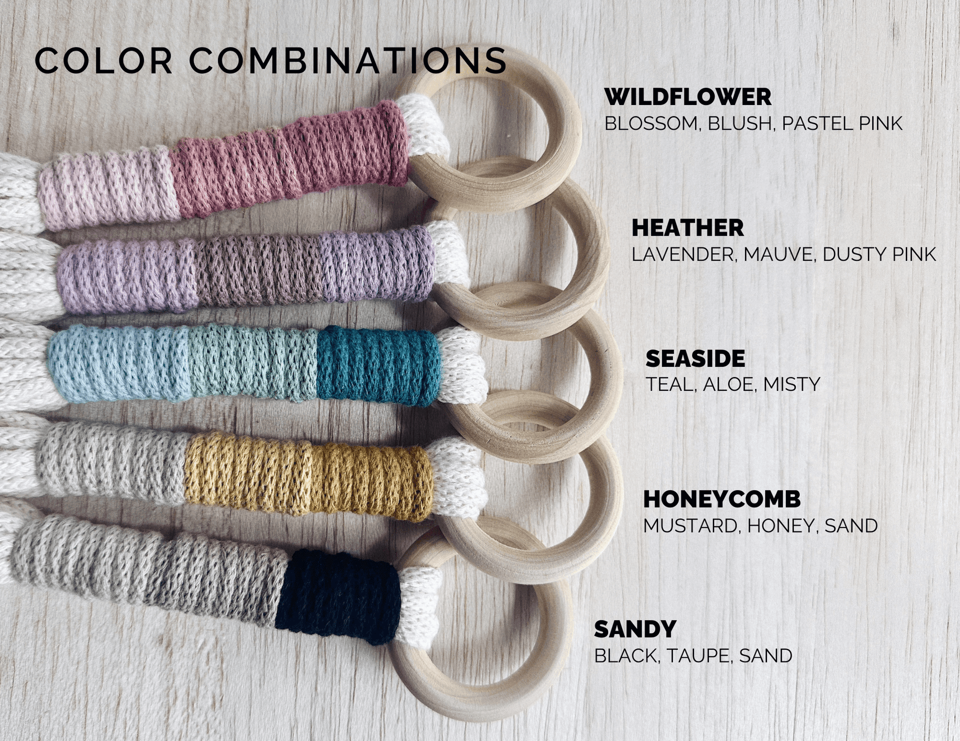 - Color options: Wildflower (pink), Heather (purple), Sandy (neutrals), Seaside (blue), or Honeycomb (yellow).
