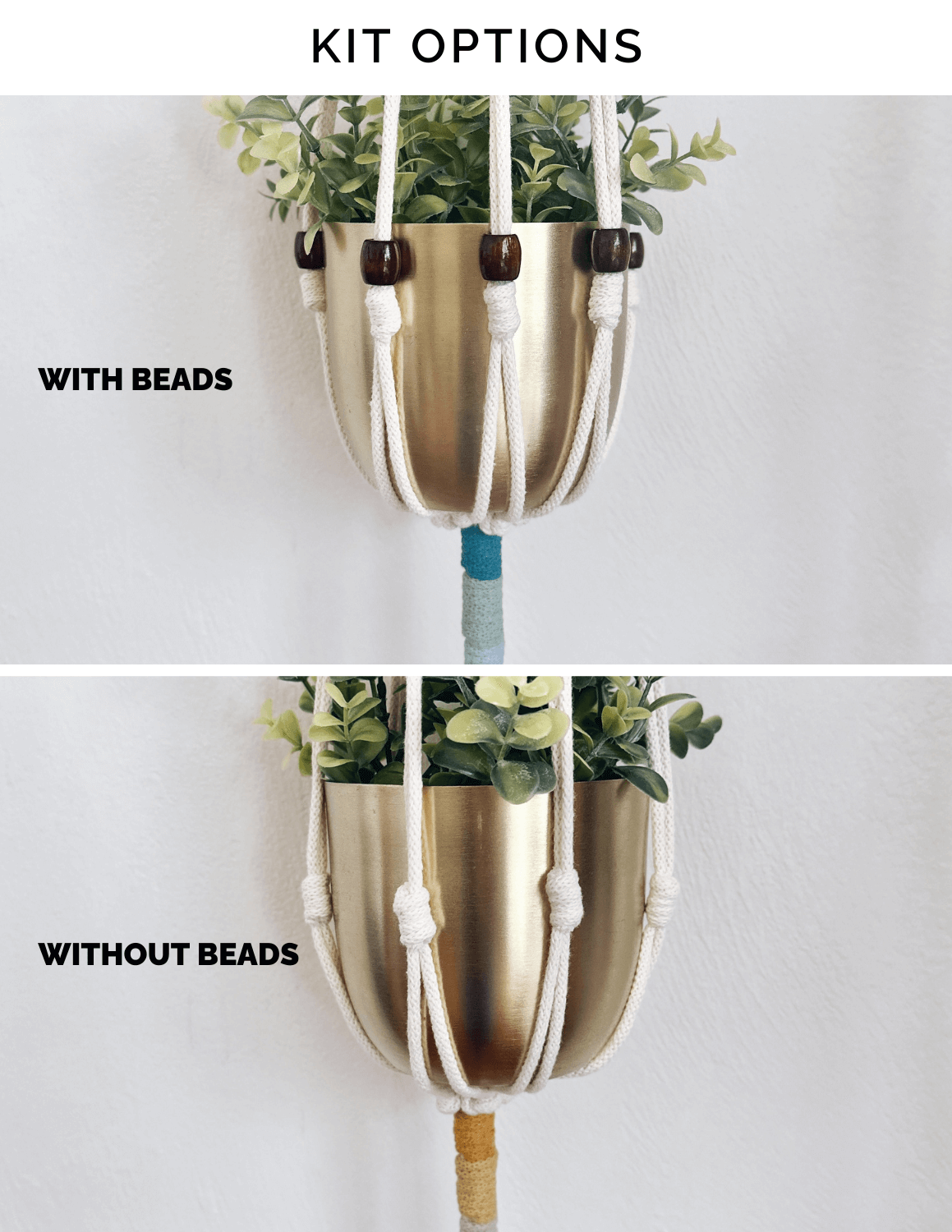 - Your kit may also include six wooden macrame beads, depending on your selection (choose beads or no beads from the drop-down menu).