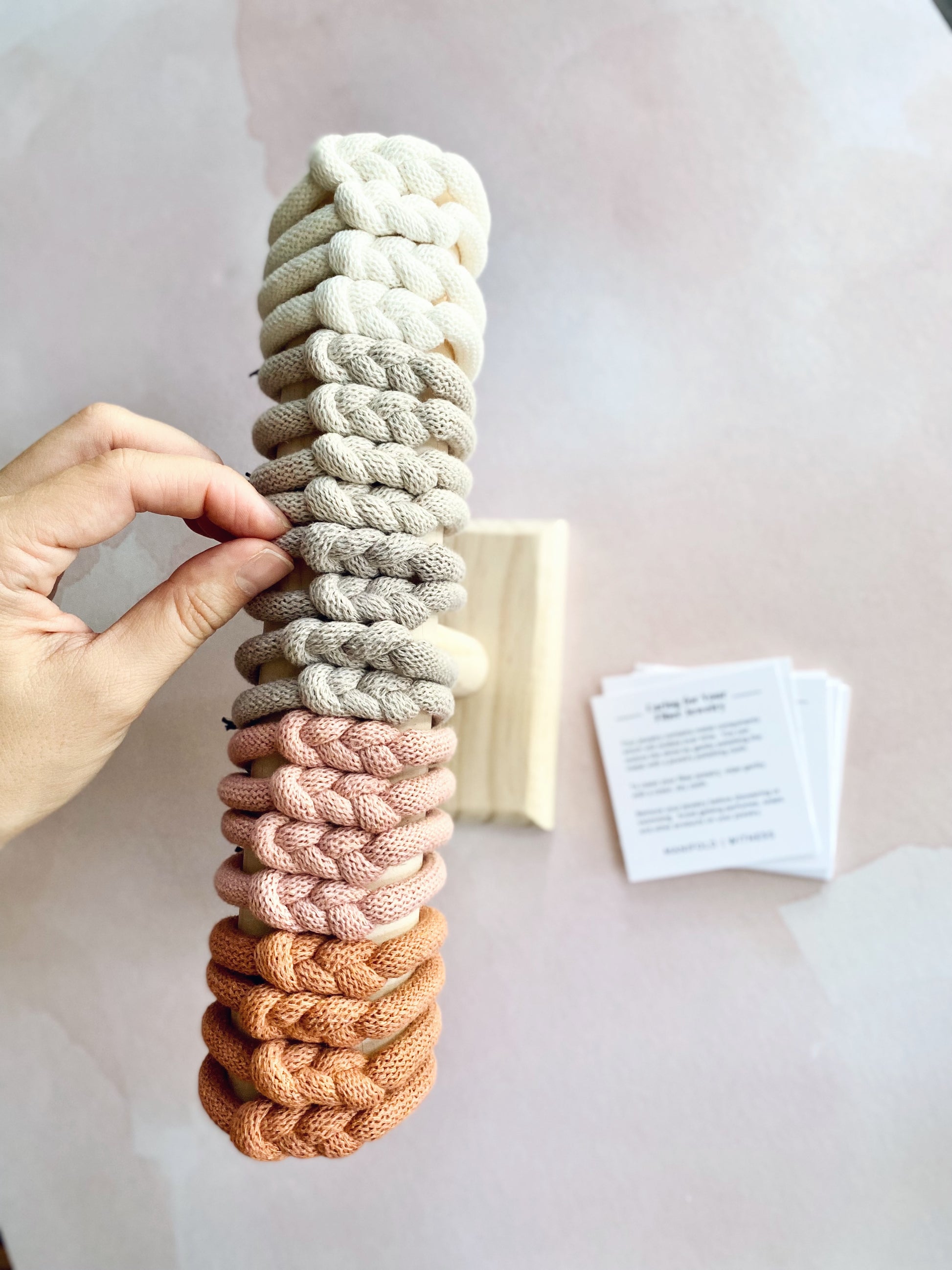 - Crafted from 100% recycled cotton cord (OEKO-TEX certified non-toxic) and a magnetic metal clasp.