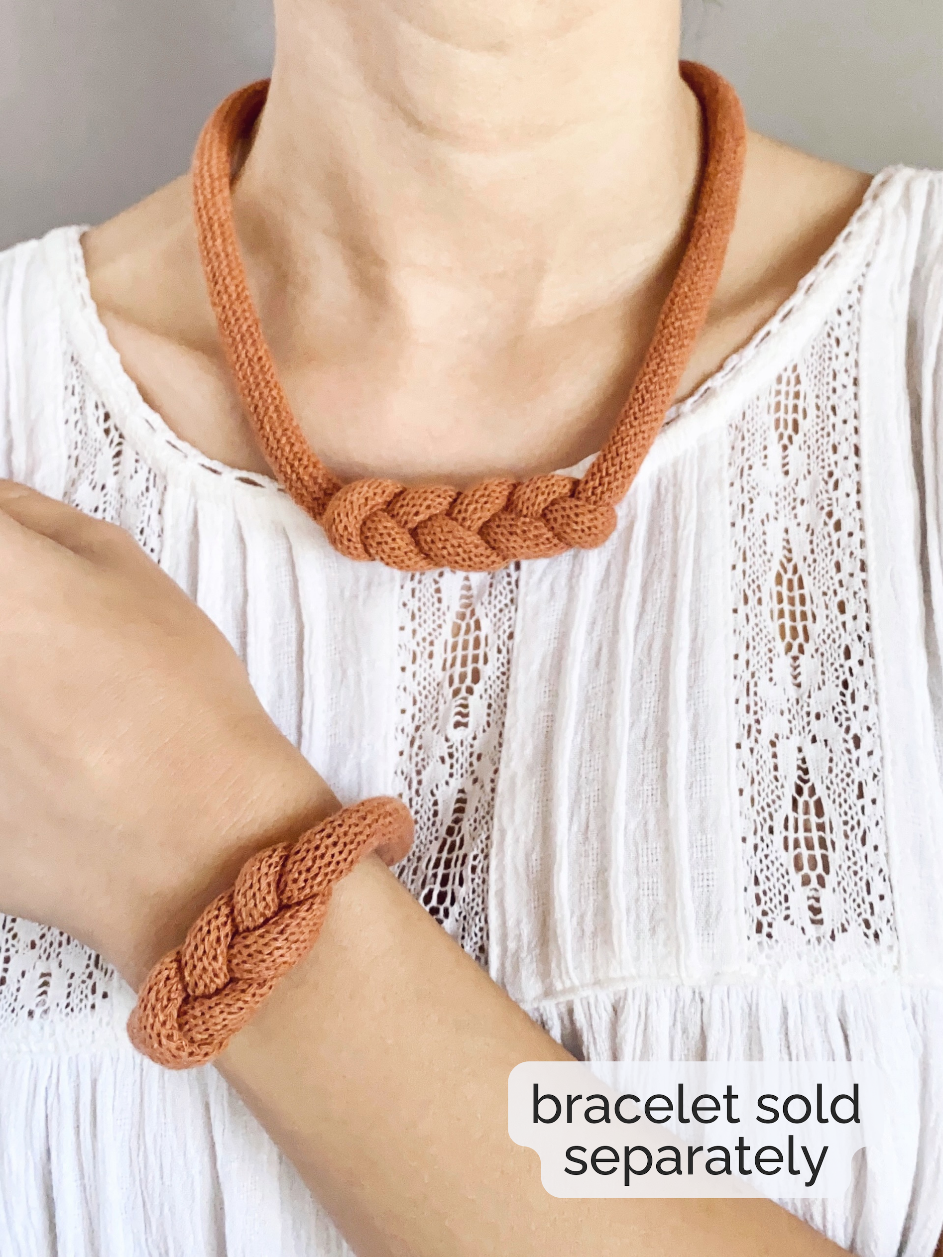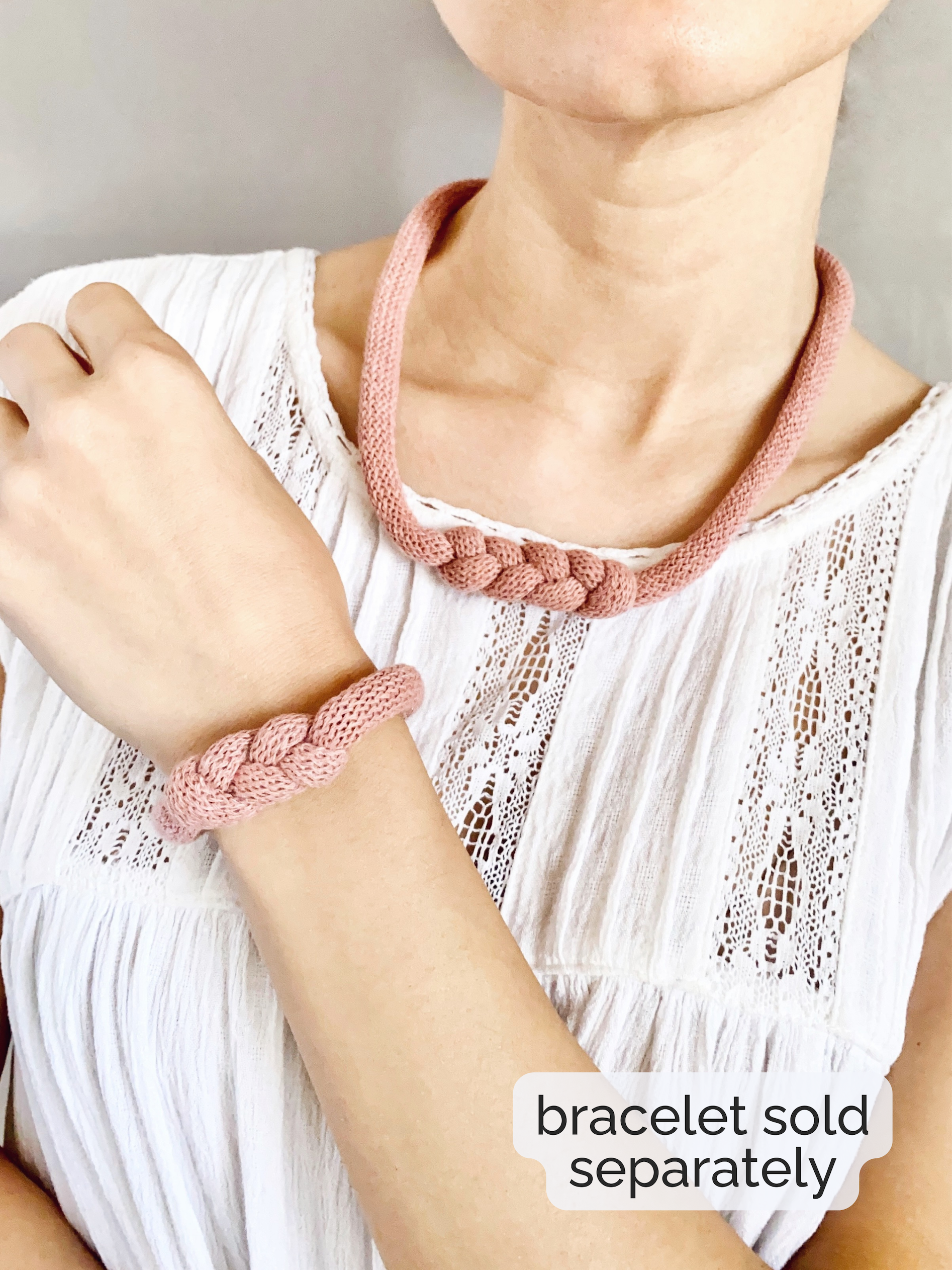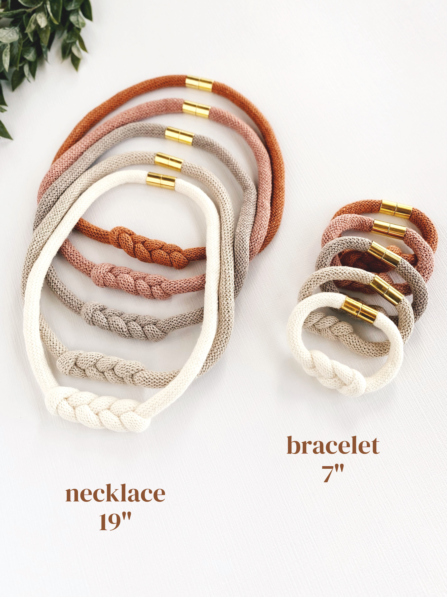 - Crafted from 100% recycled cotton cord (OEKO-TEX certified non-toxic) and a magnetic metal clasp.