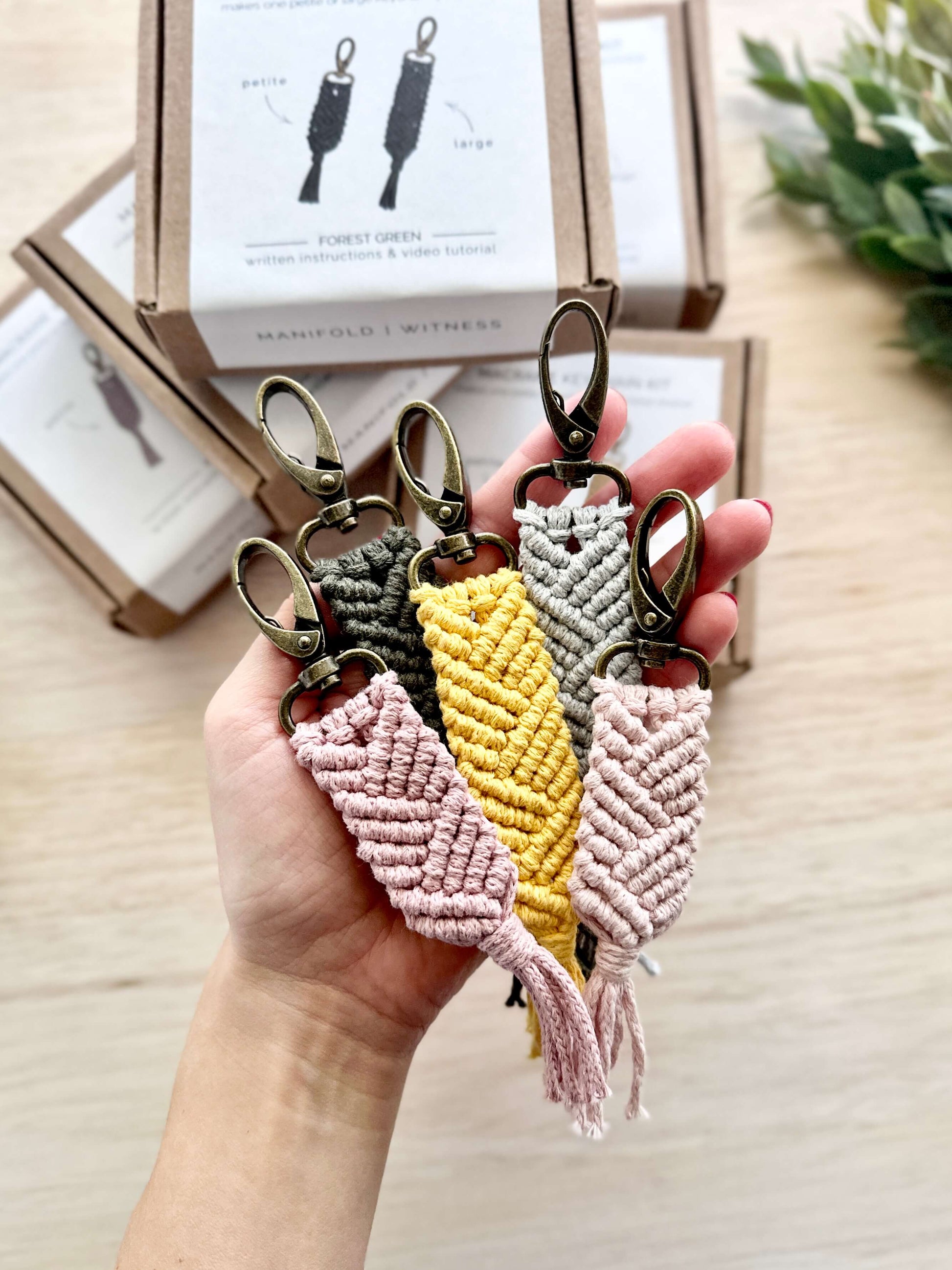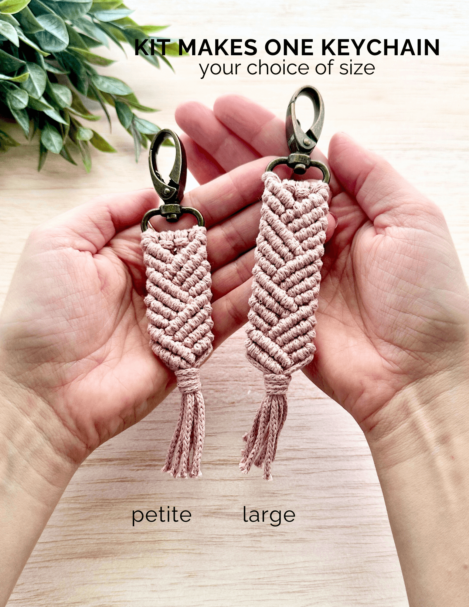The kit comes with all the materials you will need to make your own macrame keychain from recycled cotton cord. Makes ONE macrame keychain - you get to choose whether you want to make the large or petite size keychain. Links to the written instructions and video tutorial are included.
