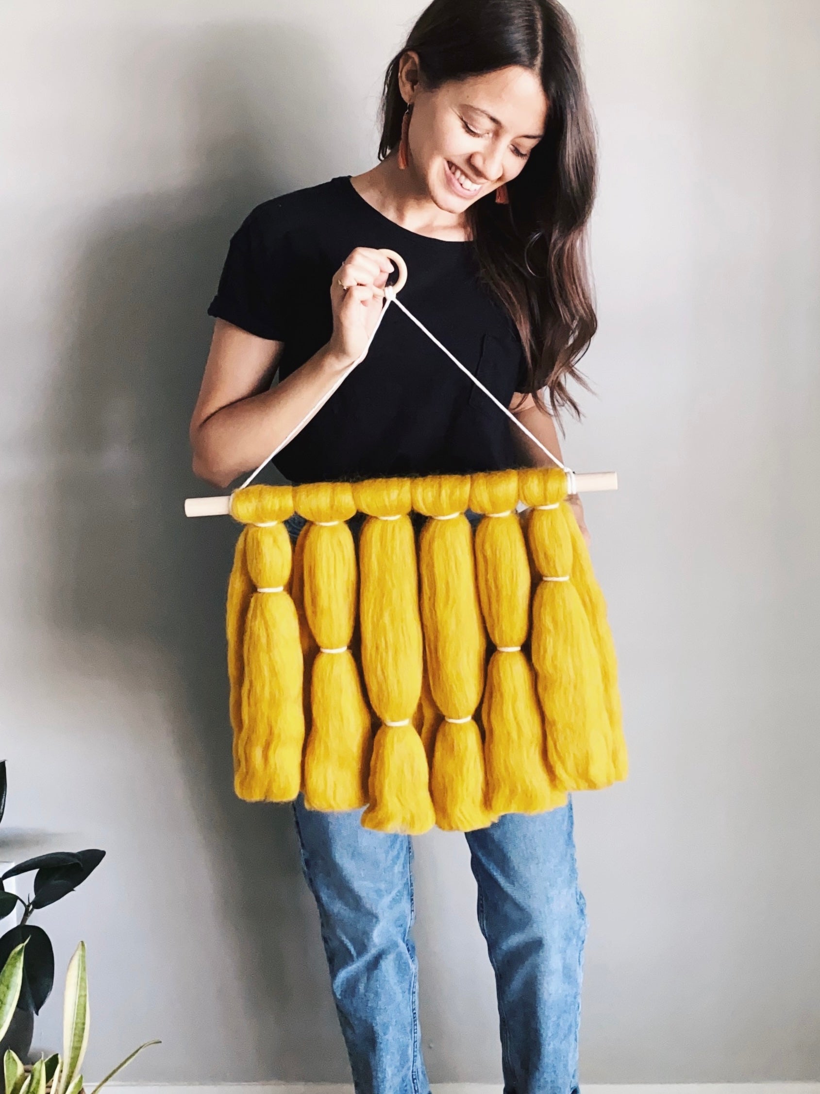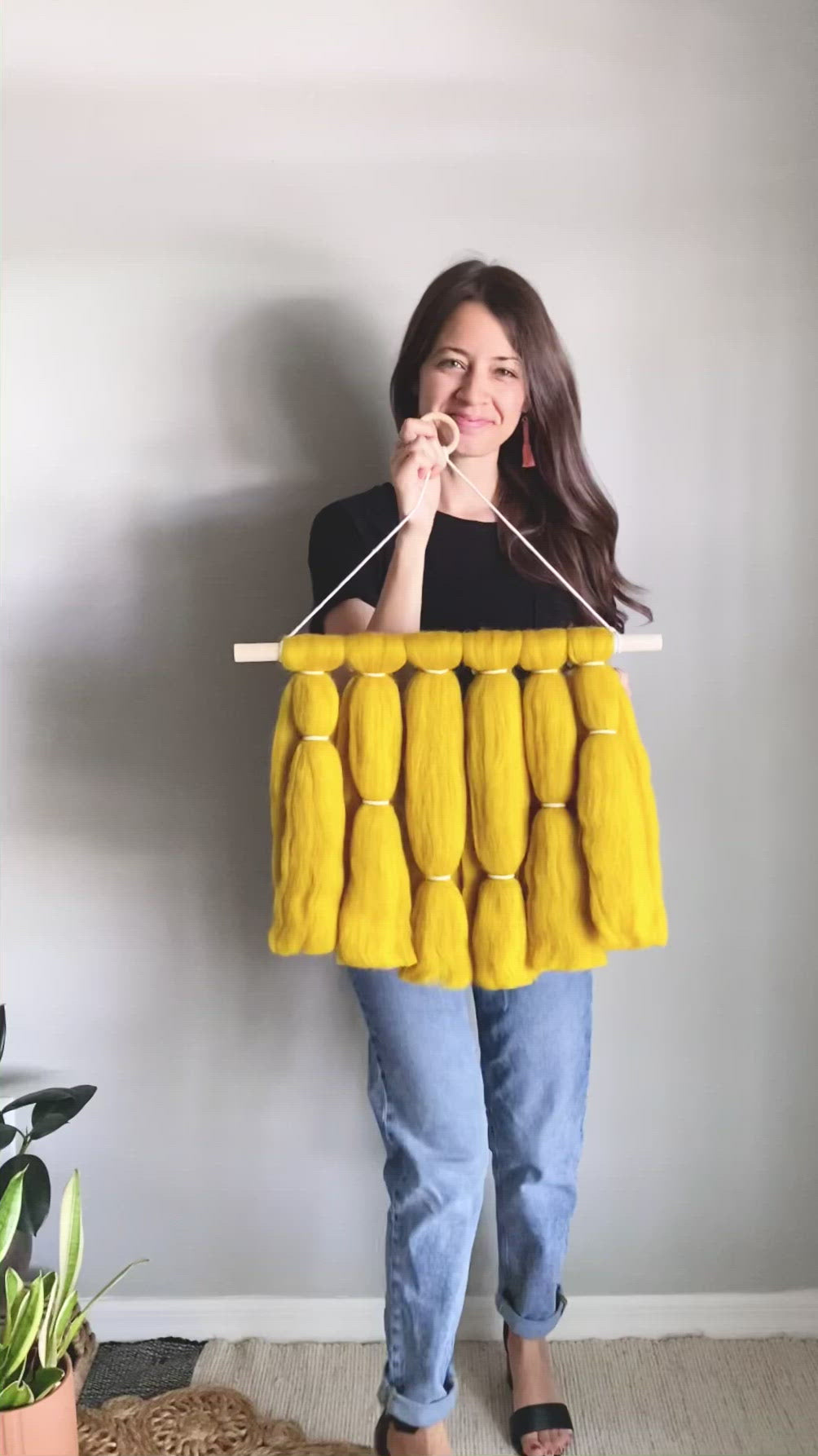 You’ll love the happy feeling that this hand-crafted fiber art wall hanging injects into your space. Made from ethically-sourced merino wool, this modern wall art piece brings a combination of cozy texture & cheerful color that no one can resist - not even the crankiest of crankypants.