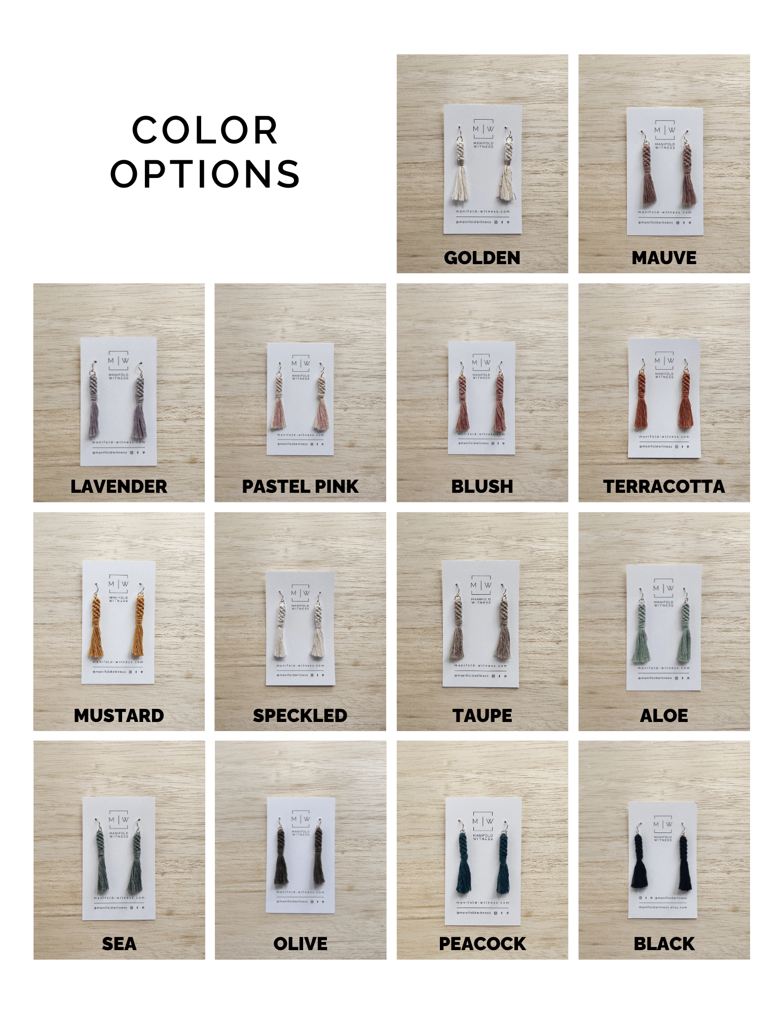- To keep your earrings looking their best, reshape with your fingers or gently comb out the tassel with a fine tooth comb. You can also carefully trim any small threads that may come loose at the bottom of the earring over time.