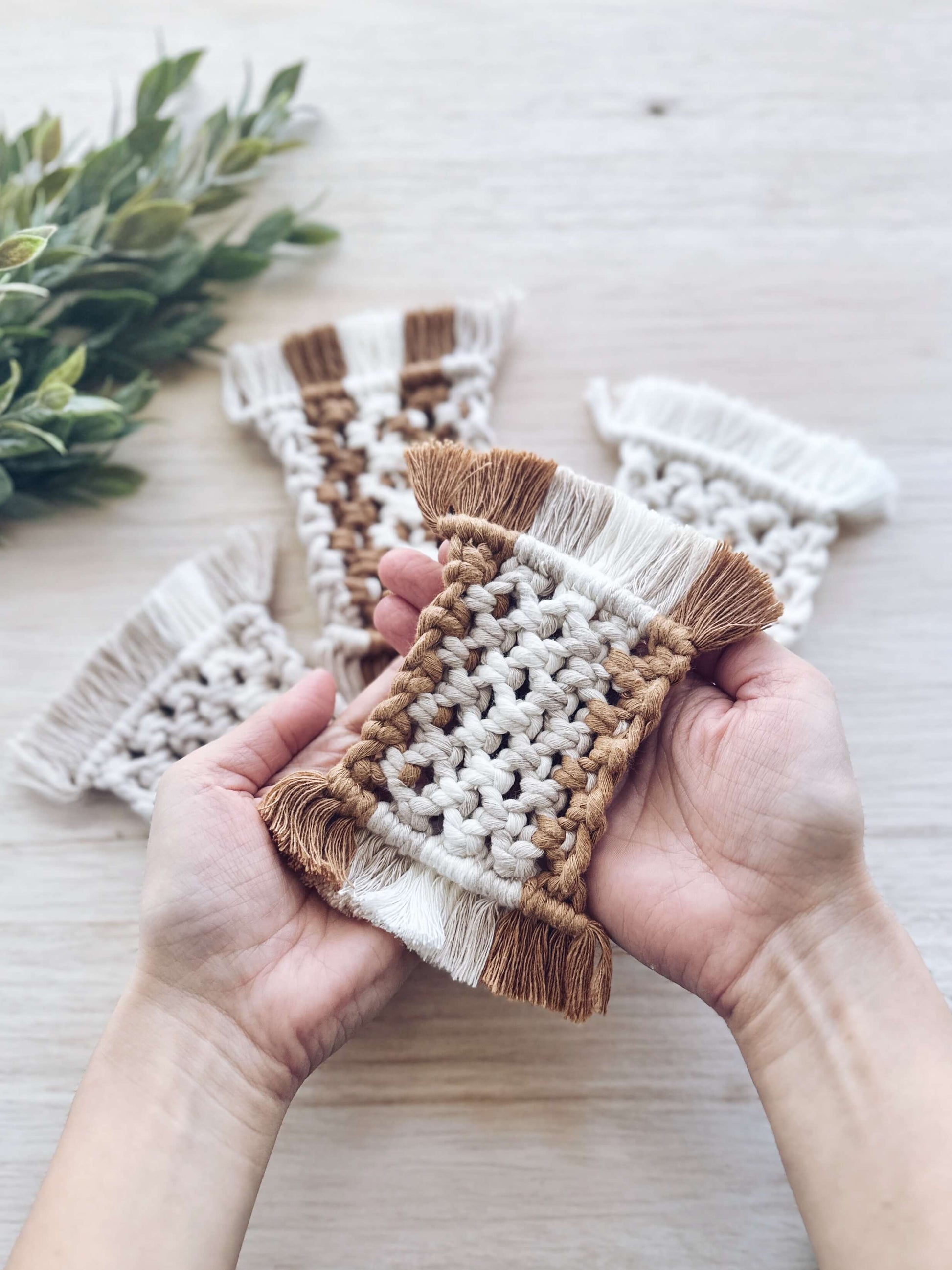 - Pattern includes materials list, written instructions, and detailed pictures to help you create your own macrame coasters.