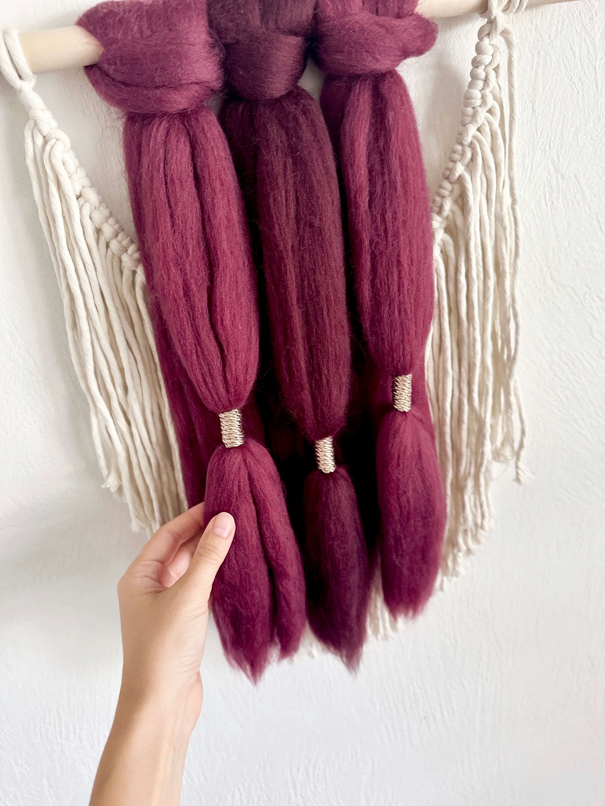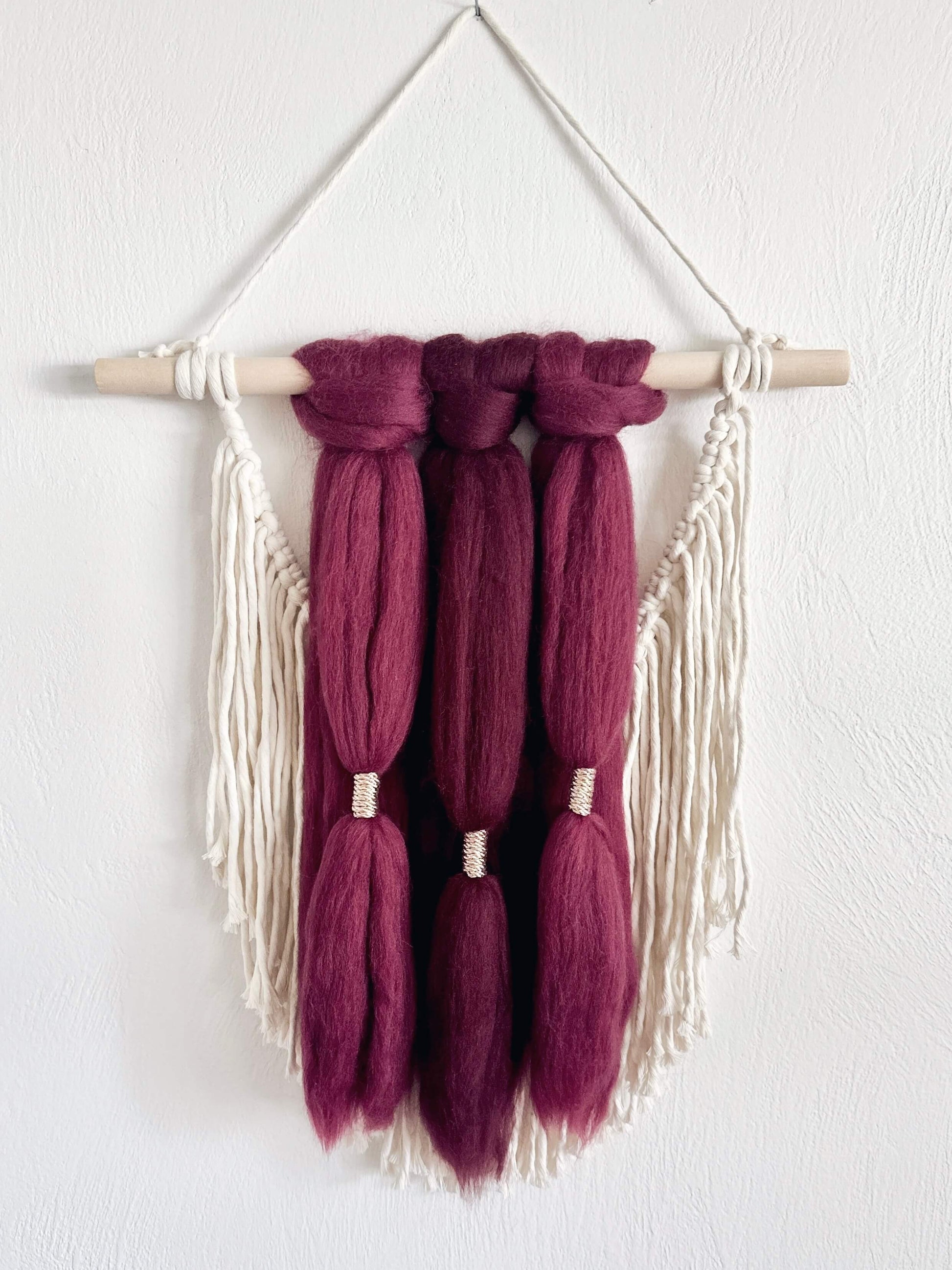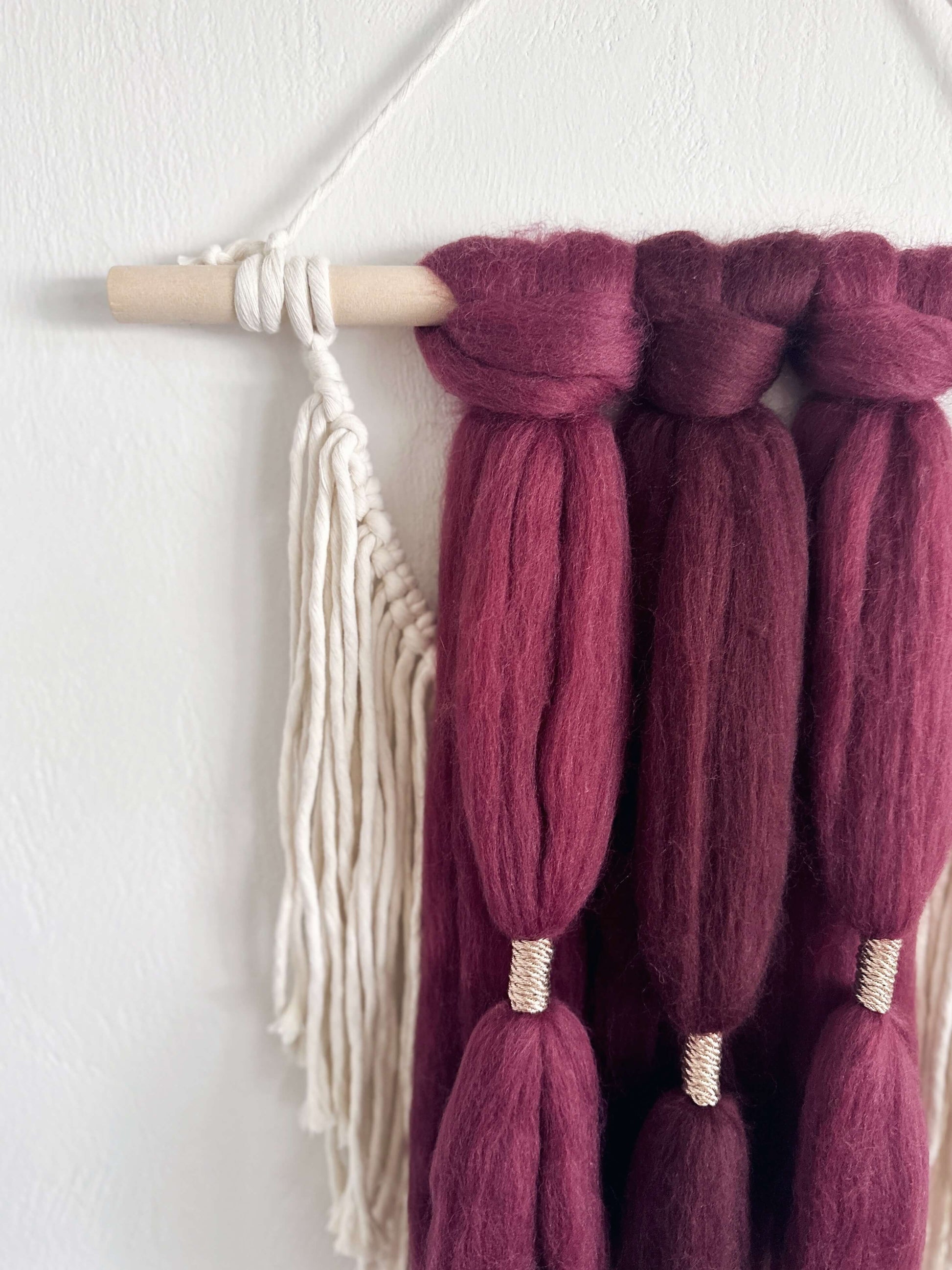 The Merino & Macrame collection was created as a smaller-scale version of my fiber art wall hangings, designed to fit almost any room or wall. This piece will infuse your space with beautiful texture, depth, and color.