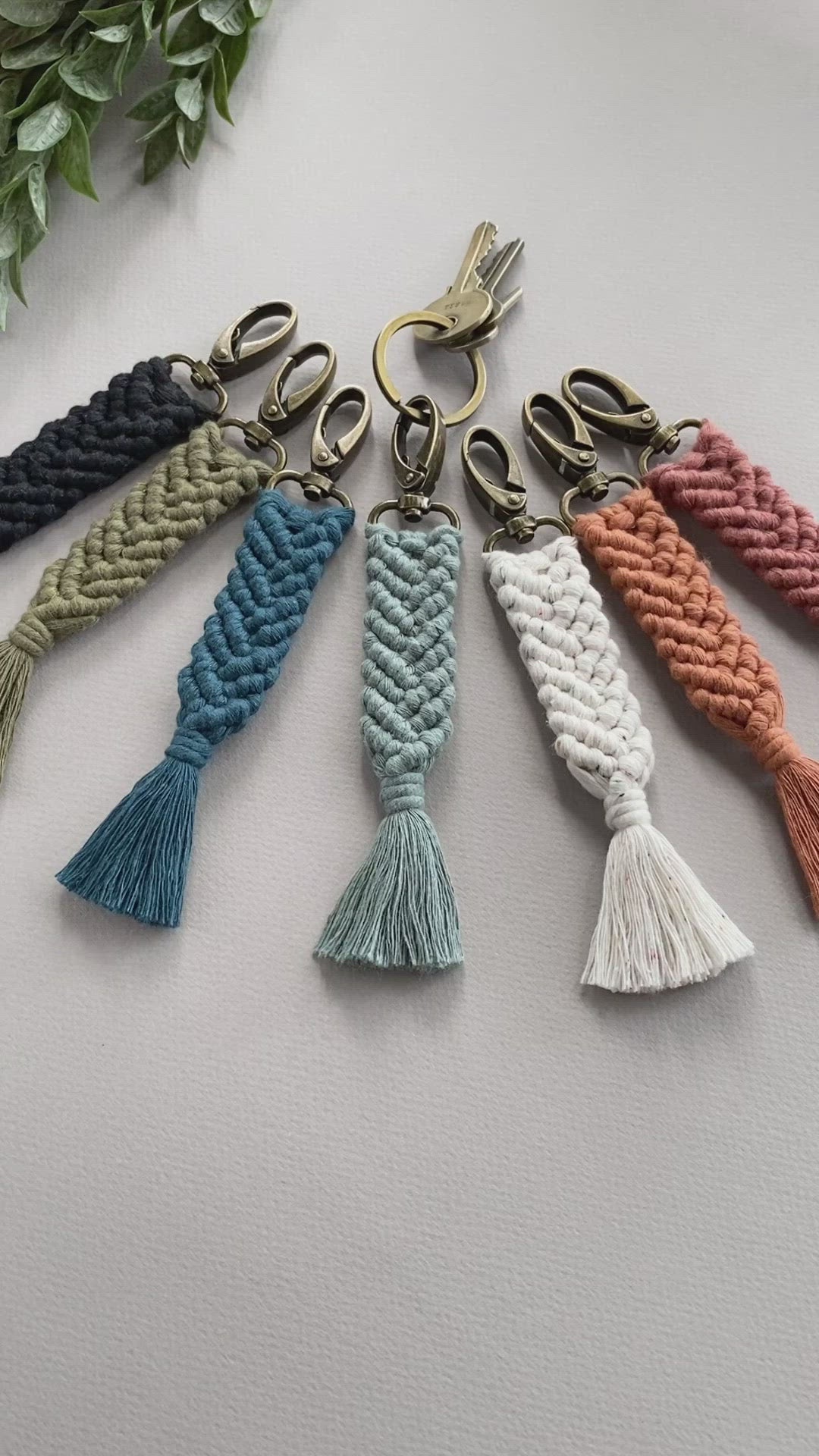- Tightly hand-knotted from soft, eco-friendly, 100% recycled cotton cord (OEKO-TEX certified non-toxic) and a durable metal keychain hook in a bronze finish.